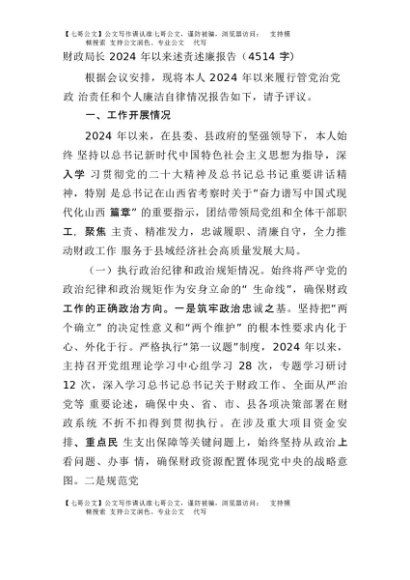 【七哥公文】2025年:财政局长2024年以来述责述廉报告(4514字)+更多免费公文+VX:QiGeGongWen2024