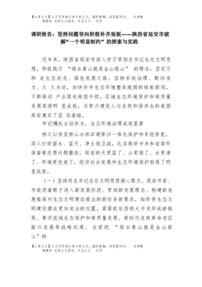 【七哥公文】2025年:调研报告:坚持问题导向 积极补齐短板——陕西省延安市破解“一个明显制约”的探索与实践+更多免费公文+VX:QiGeGongWen2024