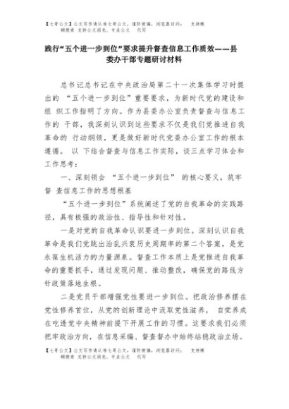 【七哥公文】2025年:践行“五个进一步到位”要求提升督查信息工作质效——县委办干部专题研讨材料+更多免费公文+VX:QiGeGongWen2024