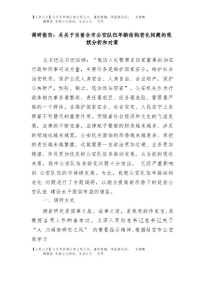 【七哥公文】2025年:调研报告:关关于当前全市公安队伍年龄结构老化问题的现状分析和对策+更多免费公文+VX:QiGeGongWen2024