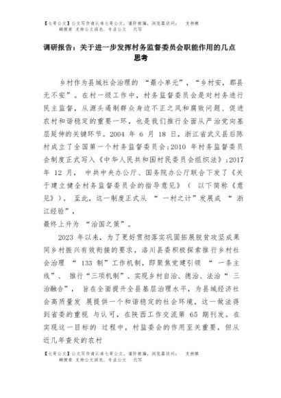 【七哥公文】2025年:调研报告:关于进一步发挥村务监督委员会职能作用的几点思考+更多免费公文+VX:QiGeGongWen2024