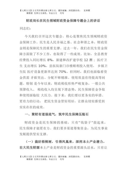 / 【七哥公文】2025年:财政局长在民生领域财政资金保障专题会上的讲话+更多免费公文+VX:QiGeGongWen2024