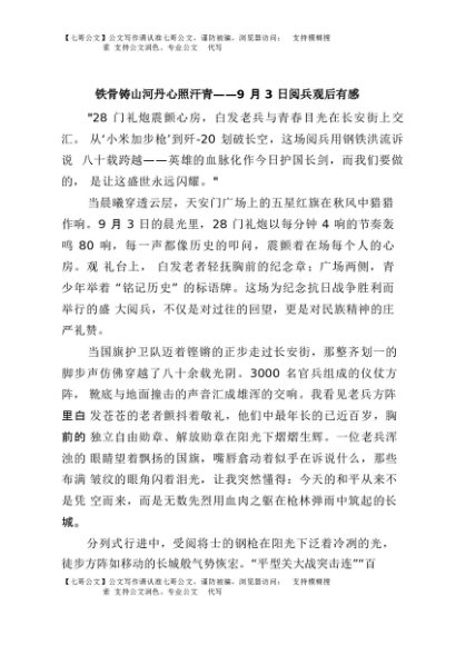 / 【七哥公文】2025年:铁骨铸山河 丹心照汗青-9月3日阅兵观后有感+更多免费公文+VX:QiGeGongWen2024