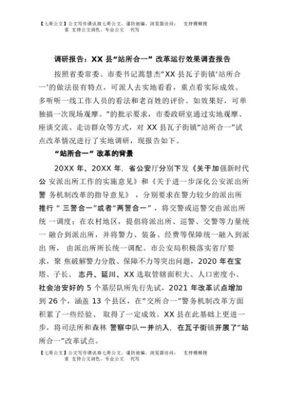【七哥公文】2025年:调研报告:XX县“站所合一”改革运行效果调查报告+更多免费公文+VX:QiGeGongWen2024
