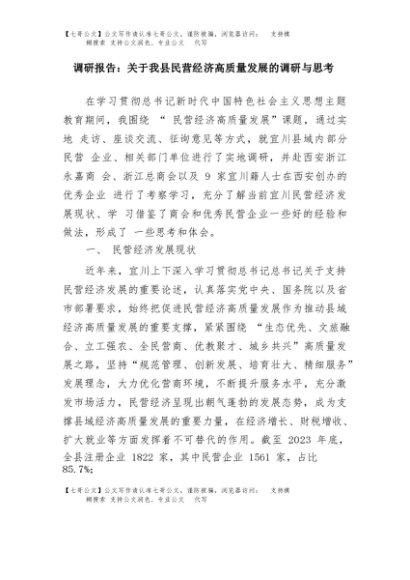【七哥公文】2025年:调研报告:关于我县民营经济高质量发展的调研与思考+更多免费公文+VX:QiGeGongWen2024