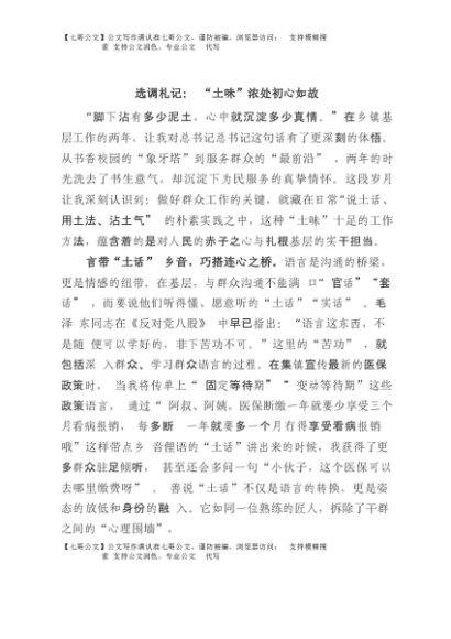 【七哥公文】2025年:选调札记:“土味”浓处 初心如故+更多免费公文+VX:QiGeGongWen2024