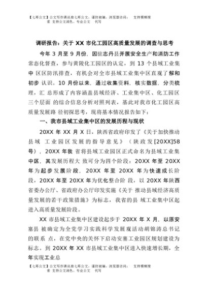 【七哥公文】2025年:调研报告:关于XX市化工园区高质量发展的调查与思考+更多免费公文+VX:QiGeGongWen2024