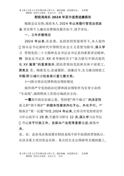 / 【七哥公文】2025年:财政局局长2024年至今述责述廉报告+更多免费公文+VX:QiGeGongWen2024