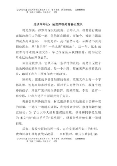 【七哥公文】2025年:选调周年记:足迹深植处 青春正生长+更多免费公文+VX:QiGeGongWen2024