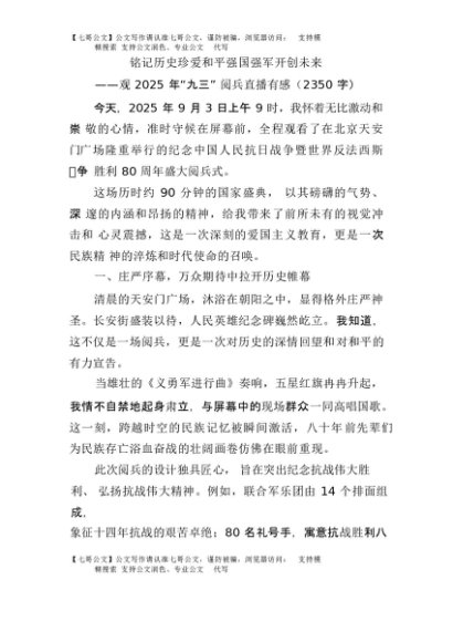 / 【七哥公文】2025年:观2025年“九三”阅兵直播有感(2350字)+更多免费公文+VX:QiGeGongWen2024