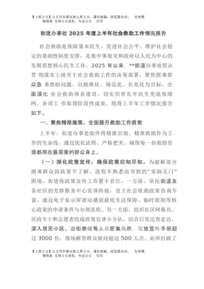 【七哥公文】2025年:街道办事处2025年度上半年社会救助工作情况报告+更多免费公文+VX:QiGeGongWen2024