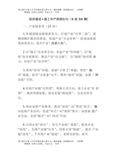 【七哥公文】2025年:经济建设+强工兴产类排比句(5组50例)+更多免费公文+VX:QiGeGongWen2024
