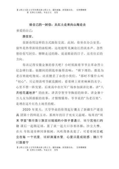 【七哥公文】2025年:给自己的一封信:从红土走来 向山海走去+更多免费公文+VX:QiGeGongWen2024