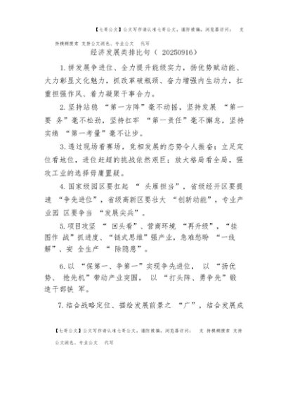 / 【七哥公文】2025年:经济发展类排比句(202509)+更多免费公文+VX:QiGeGongWen2024