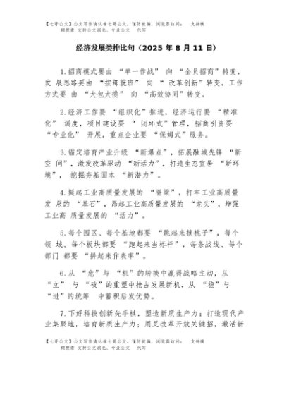 / 【七哥公文】2025年:经济发展类排比句(2025年8月11日)+更多免费公文+VX:QiGeGongWen2024