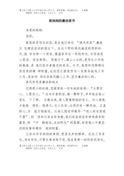 【七哥公文】2025年:致妈妈的廉洁家书+更多免费公文+VX:QiGeGongWen2024