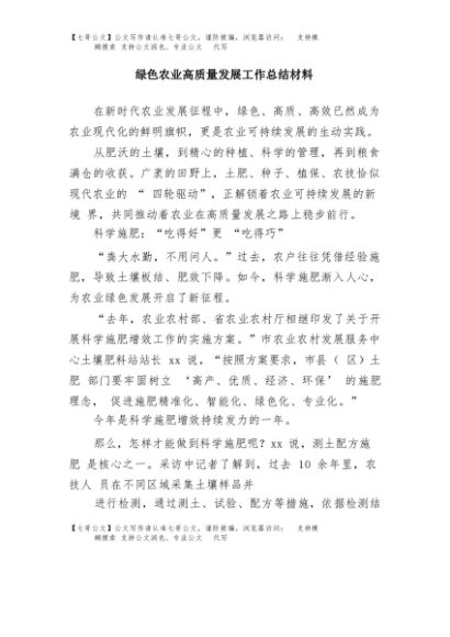 【七哥公文】2025年:绿色农业高质量发展工作总结材料+更多免费公文+VX:QiGeGongWen2024