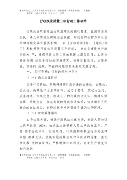/ 【七哥公文】2025年:行政执法质量三年行动工作总结+更多免费公文+VX:QiGeGongWen2024