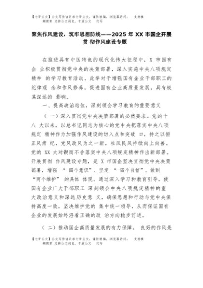 【七哥公文】2025年:聚焦作风建设,筑牢思想防线——2025年XX市国企开展贯彻作风建设专题+更多免费公文+VX:QiGeGongWen2024