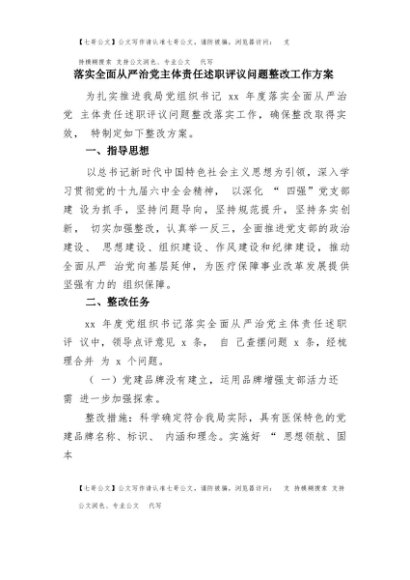 【七哥公文】2025年:落实全面从严治党主体责任述职评议问题整改工作方案+更多免费公文+VX:QiGeGongWen2024