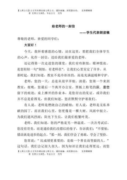 / 【七哥公文】2025年:给老师的一封信-学生代表朗读稿+更多免费公文+VX:QiGeGongWen2024