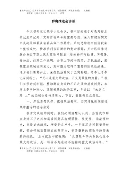 【七哥公文】2025年:群腐推进会讲话+更多免费公文+VX:QiGeGongWen2024