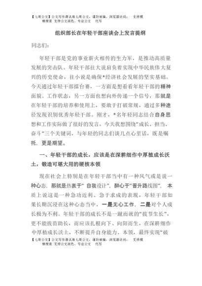 / 【七哥公文】2025年:组织部长在年轻干部座谈会上发言提纲+更多免费公文+VX:QiGeGongWen2024