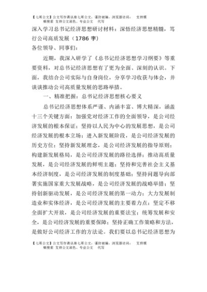 【七哥公文】2025年:深入学习总书记经济思想研讨材料:深悟经济思想精髓,笃行公司高质发展(1786字)+更多免费公文+VX:QiGeGongWen2024
