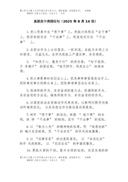 / 【七哥公文】2025年:真抓实干类排比句(2025年8月)+更多免费公文+VX:QiGeGongWen2024