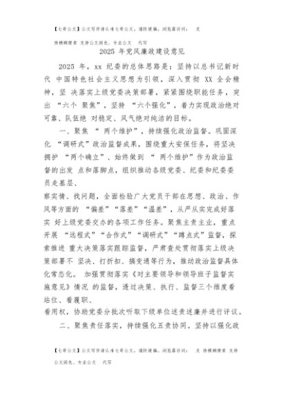 【七哥公文】2025年:纪委党风廉政建设意见+更多免费公文+VX:QiGeGongWen2024