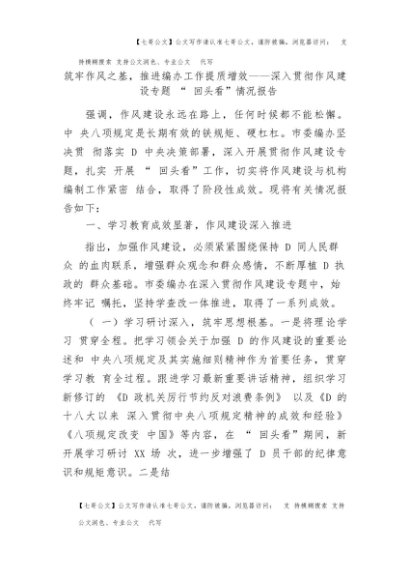 【七哥公文】2025年:深入贯彻作风建设专题回头看情况报告+更多免费公文+VX:QiGeGongWen2024