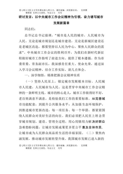 【七哥公文】2025年:研讨发言:以中央城市工作会议精神为引领,奋力谱写城市发展新篇章+更多免费公文+VX:QiGeGongWen2024