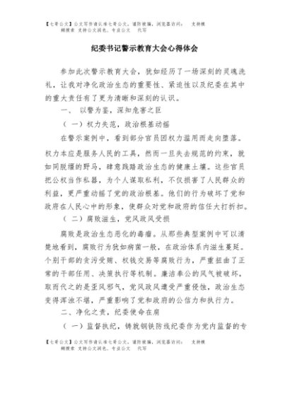 / 【七哥公文】2025年:纪委书记警示教育大会心得体会+更多免费公文+VX:QiGeGongWen2024