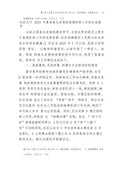【七哥公文】2025年:社区关于2025年夏季基孔肯雅热疫情防控工作的总结报告+更多免费公文+VX:QiGeGongWen2024