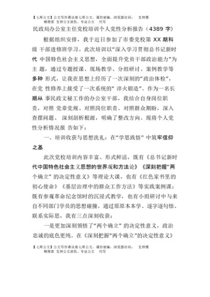 【七哥公文】2025年:民政局办公室主任党校培训个人党性分析报告(4389字)+更多免费公文+VX:QiGeGongWen2024