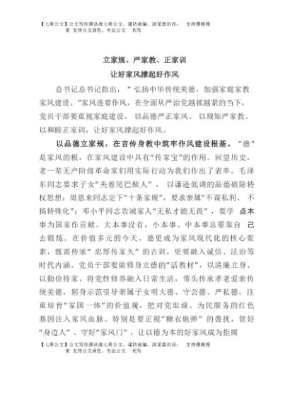 / 【七哥公文】2025年:立家规、严家教、正家训让好家风撑起好作风+更多免费公文+VX:QiGeGongWen2024