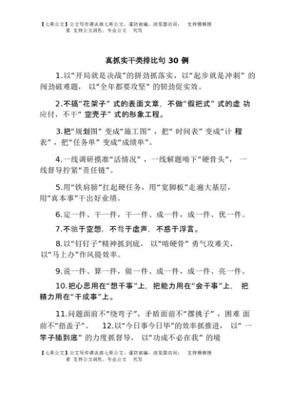 【七哥公文】2025年:真抓实干类排比句30例+更多免费公文+VX:QiGeGongWen2024