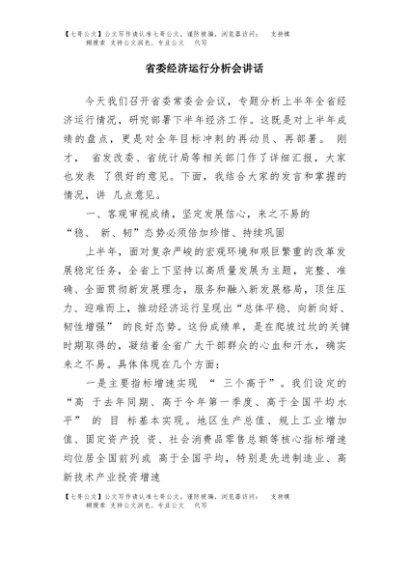 / 【七哥公文】2025年:省委经济运行分析会讲话+更多免费公文+VX:QiGeGongWen2024