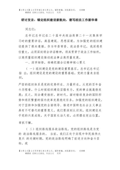 【七哥公文】2025年:研讨发言:锚定组织建设新航向,谱写政法工作新华章+更多免费公文+VX:QiGeGongWen2024