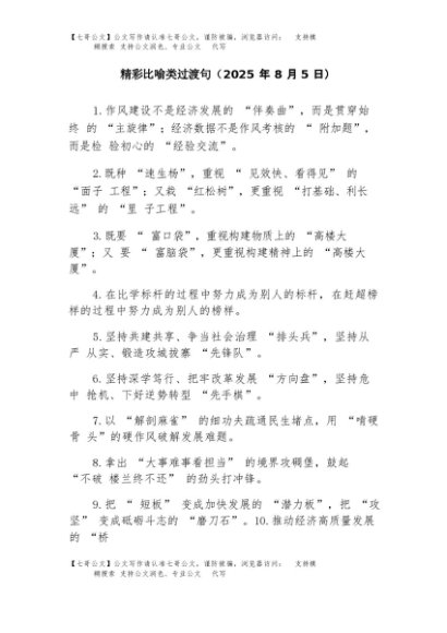 / 【七哥公文】2025年:精彩比喻类过渡句(2025年8月)+更多免费公文+VX:QiGeGongWen2024