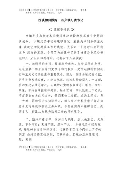 【七哥公文】2025年:浅谈如何做好一名乡镇纪委书记+更多免费公文+VX:QiGeGongWen2024
