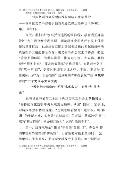 【七哥公文】2025年:筑牢抵制违规吃喝防线敲响清正廉洁警钟——在单位党员干部警示教育专题党课上的讲话(3461字)+更多免费公文+VX:QiGeGongWen2024