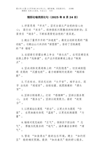 【七哥公文】2025年:精彩比喻类排比句(2025年9月)+更多免费公文+VX:QiGeGongWen2024