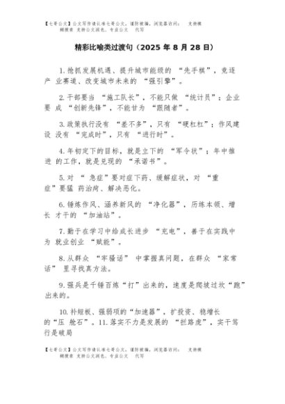 / 【七哥公文】2025年:精彩比喻类过渡句(2025年8月28日)+更多免费公文+VX:QiGeGongWen2024