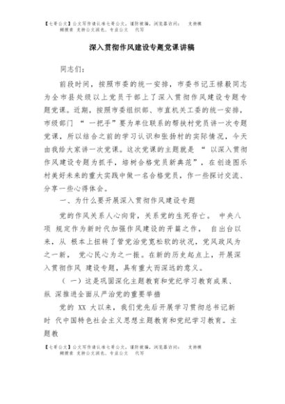 / 【七哥公文】2025年:深入贯彻作风建设专题党课讲稿+更多免费公文+VX:QiGeGongWen2024