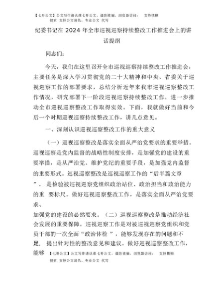 【七哥公文】2025年:纪委书记在2024年全市巡视(巡察)持续整改工作推进会上的讲话+更多免费公文+VX:QiGeGongWen2024