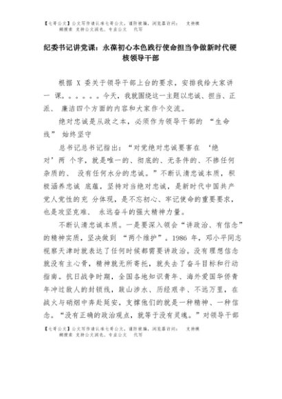 【七哥公文】2025年:纪委书记讲党课:永葆初心本色践行使命担当争做新时代硬核领导干部+更多免费公文+VX:QiGeGongWen2024