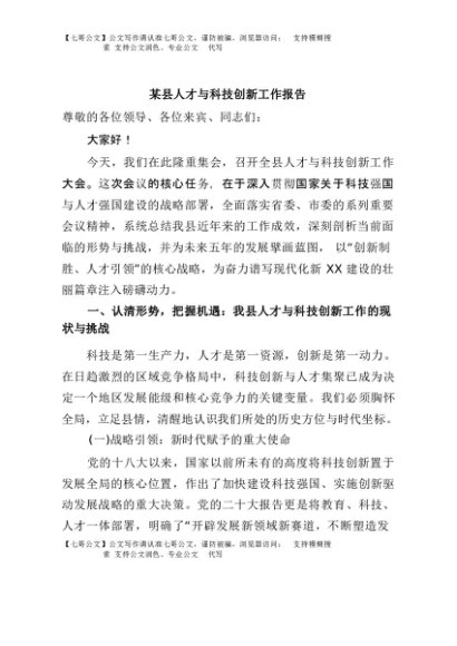 / 【七哥公文】2025年:某县人才与科技创新工作报告+更多免费公文+VX:QiGeGongWen2024