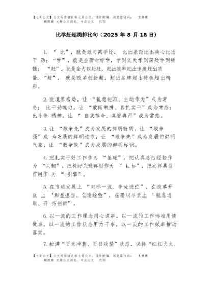 【七哥公文】2025年:比学赶超类排比句(2025年9月)+更多免费公文+VX:QiGeGongWen2024