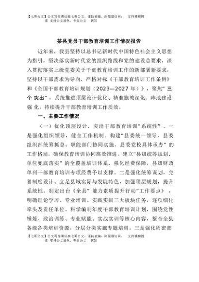 / 【七哥公文】2025年:某县党员干部教育培训工作情况报告+更多免费公文+VX:QiGeGongWen2024